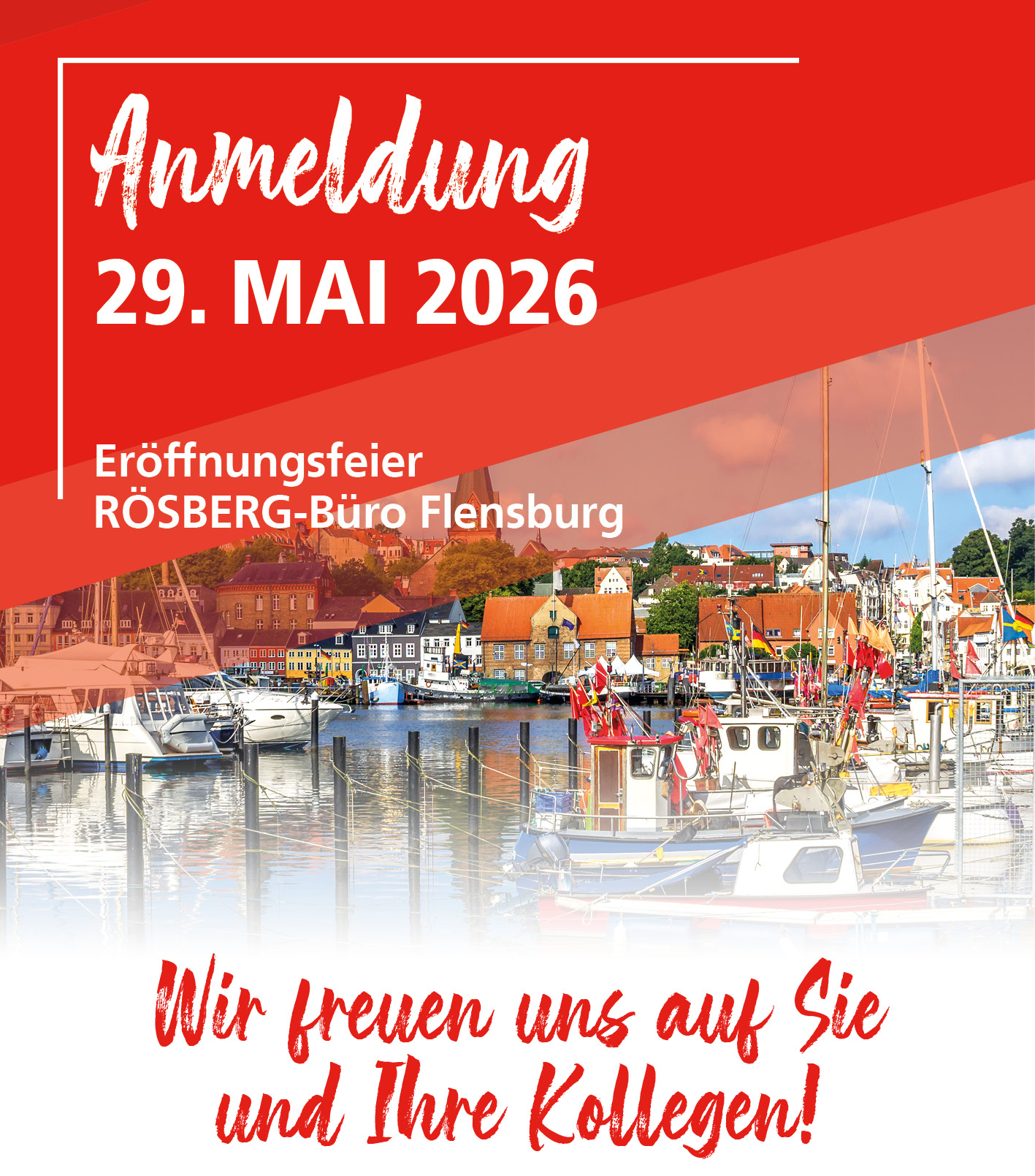 Wir eröffnen unser neues RÖSBERG-Büro in Flensburg – und feiern das standesgemäß: auf dem Wasser, mit gutem Essen, kühlen Getränken und hoffentlich mit Ihnen.